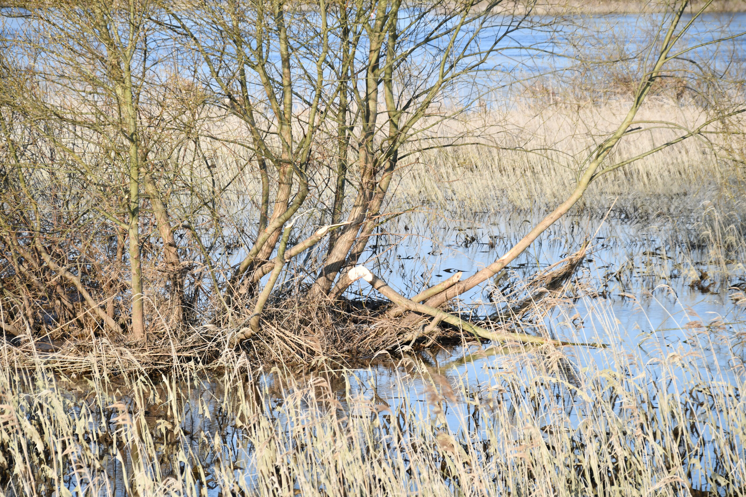 Beim Winterspaziergang im Vordeichland finde ich Biberspuren. Das Wasser geht, der Frühling kommt (leider auch Nierenkoliken ☹️).